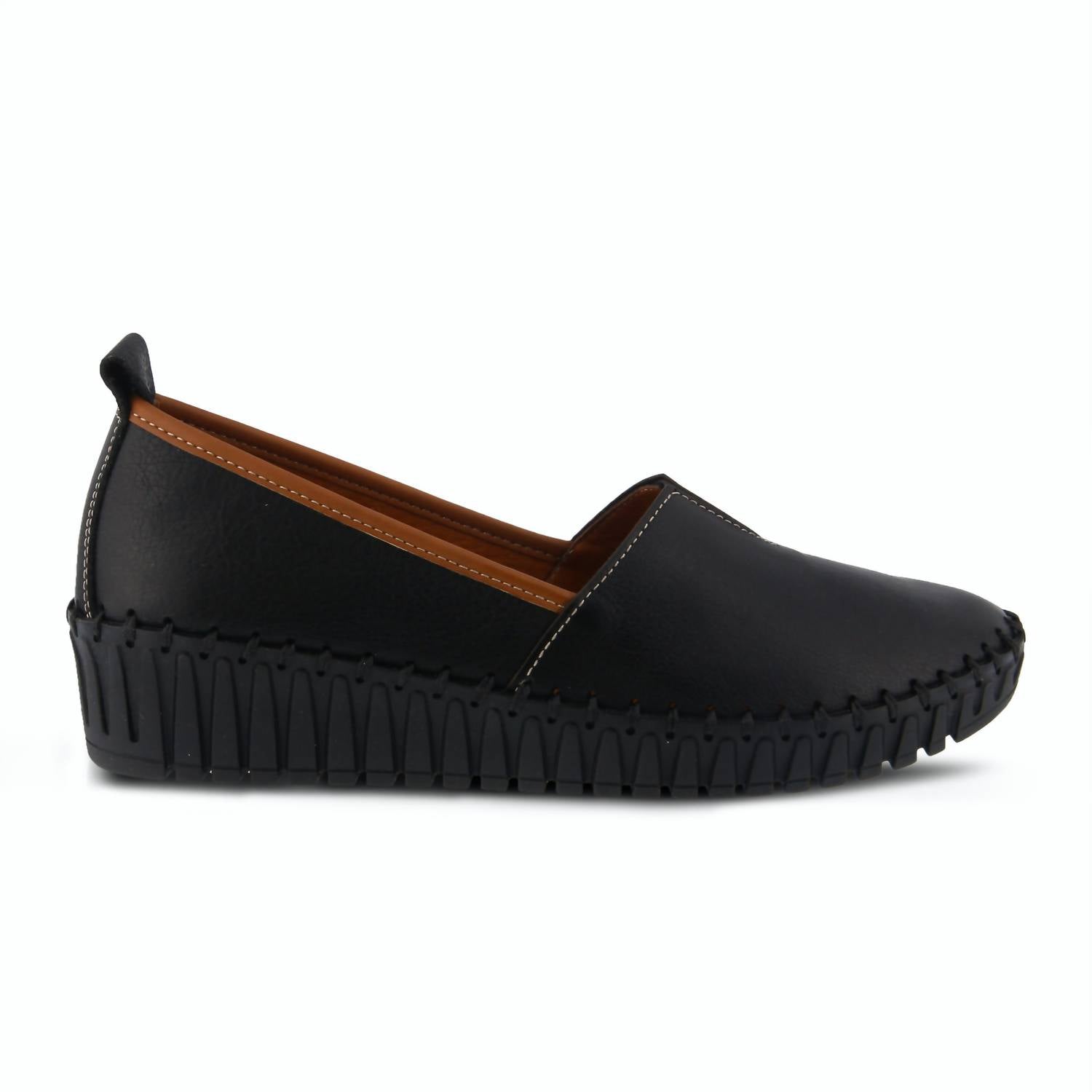 Elevate your footwear game with the Women's Tispea Loafer by SPRING STEP SHOES, a premium slip-on crafted for both style and comfort. With a high-quality leather composition, its almond toe silhouette and contrast stitching add a sophisticated touch, accentuated by an elastic v-cut vamp for a secure fit. This loafer boasts a sculpted rubber wedge outsole with a 1.5" heel and 0.75" platform for subtle elevation. Made in Turkey, the design includes a pull-on heel tab, cozy leather lining, and a removable padded insole.