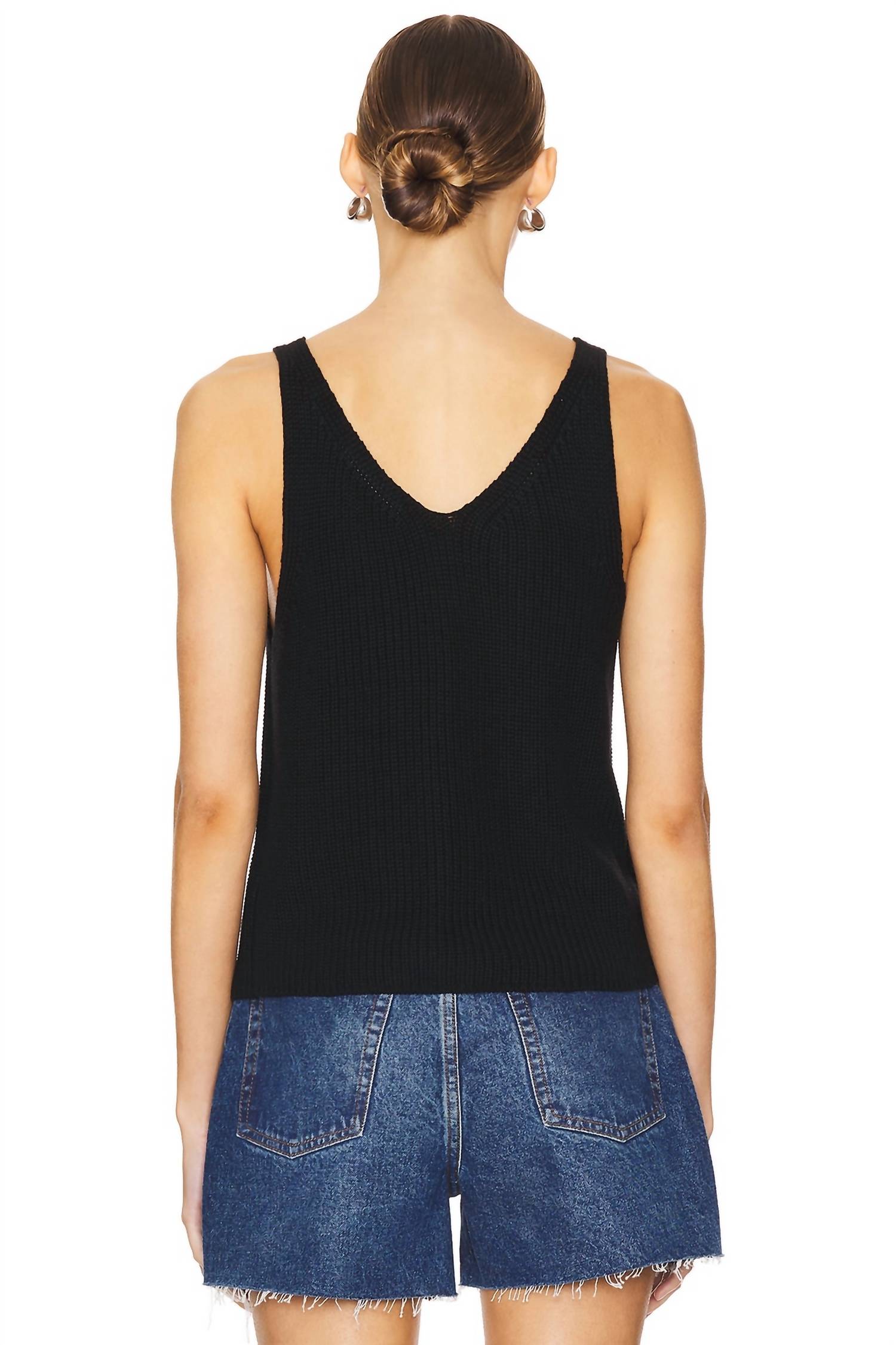 Introducing the Raleigh Tank Top by One Grey Day, a chic addition to your wardrobe in timeless black. This sleeveless tank is crafted from a soft 60% Cotton, 40% Viscose blend, ensuring comfort and style with its relaxed fit and V-neckline at both front and back. Made in China, this solid-patterned top offers easy wear with a pull-on closure and branded whip-stitching detailing. Care: Machine wash. Model is 5'9", wearing size small.