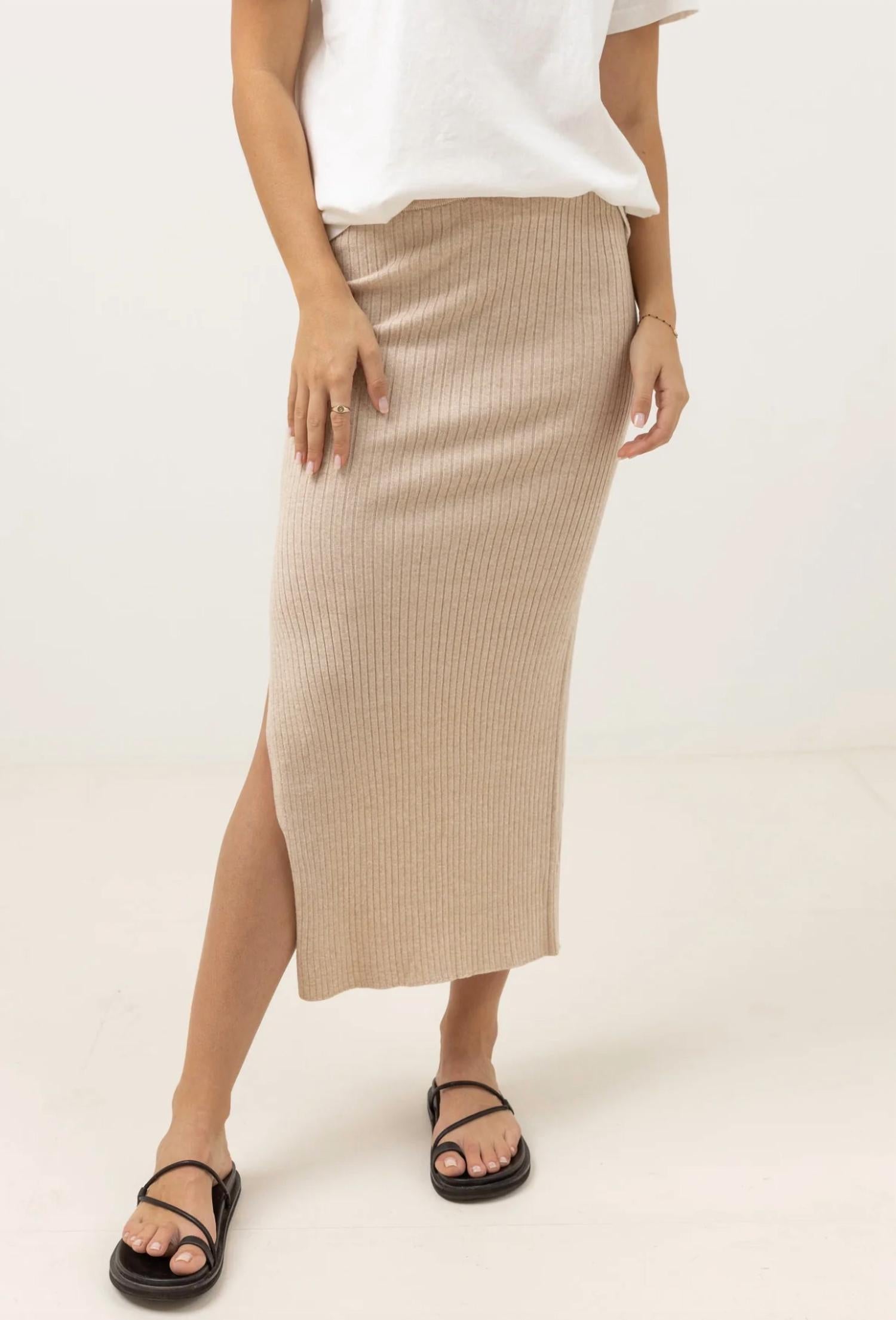 Show off just the right amount of skin in this beautifuly designed midi length skirt. Comfort and style in the same breath, this high rise slim fitted knit has a spot by the pool and a seat at the bar. Featuring a flattering tall side split for a relaxed summer feel, the Hayman Knit Midi Skirt has us ready for poolside