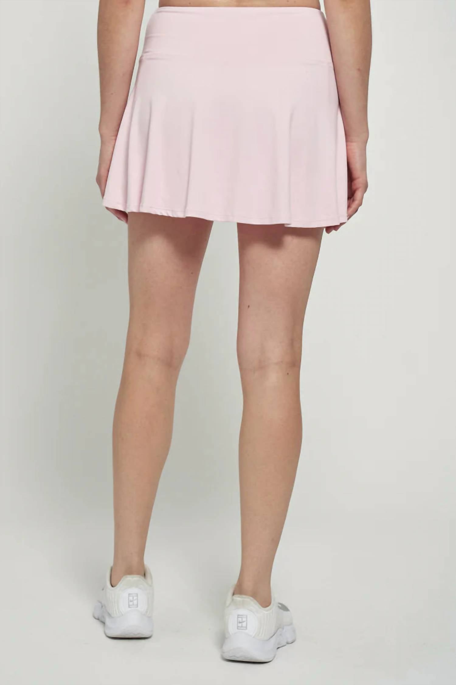 The Patina Skort features a 14" length and a subtle A-line silhouette for a flattering, feminine fit. Designed with a high waistband for comfort and style, it includes convenient side pockets on the built-in undershorts, making it both functional and versatile. Made from Elite fabric: 92% Nylon, 8% Elastane.
