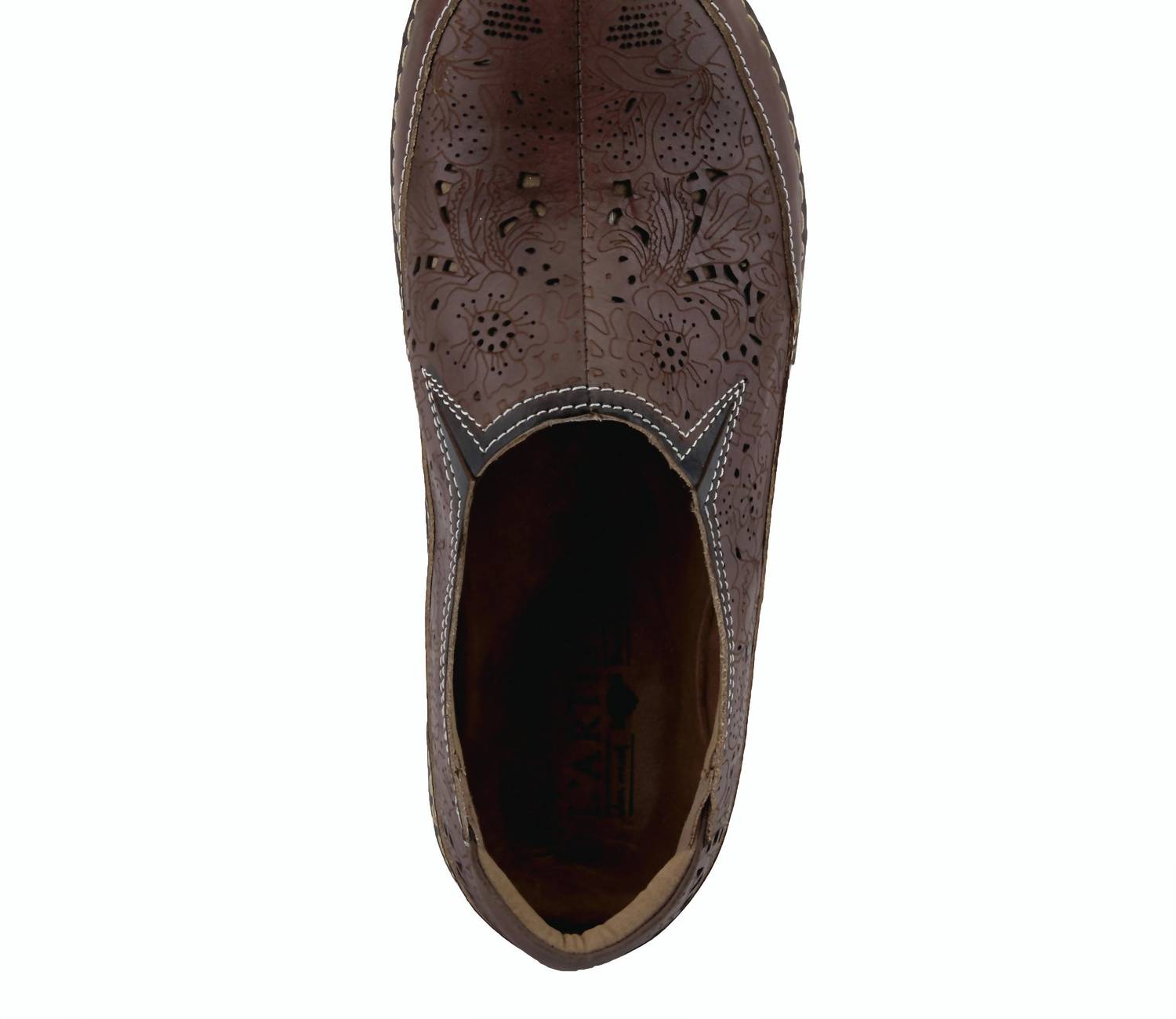 A classic loafer that is both comfortable and polished. Experience the exquisite craftsmanship of the Women's Libora Leather Loafer by L'Artiste, a flat heel loafer with a chic 7/8 inch height. This French-inspired design boasts a hand-painted leather with beautiful flower perforated detailing and contrast stitching. T