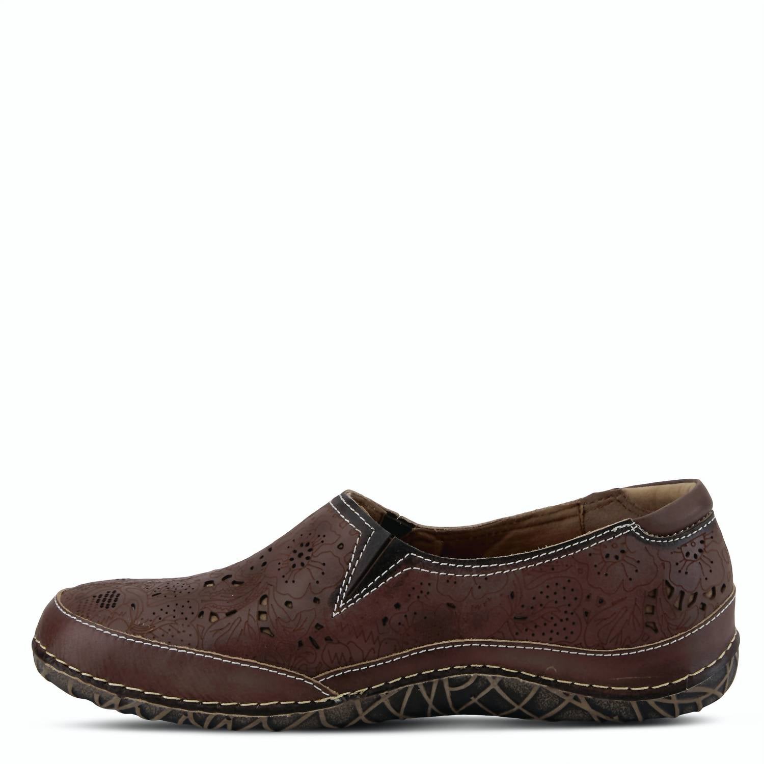 Experience the exquisite craftsmanship of the Women's Libora Leather Loafer by L'Artiste, a flat heel loafer with a chic 7/8 inch height. This French-inspired design boasts a hand-painted leather with beautiful flower perforated detailing and contrast stitching. The round toe shape and covered elastic goring provide comfort and style, complemented by synthetic leather lining and insole. The rubber outsole ensures durability, making it a perfect choice for any wardrobe.