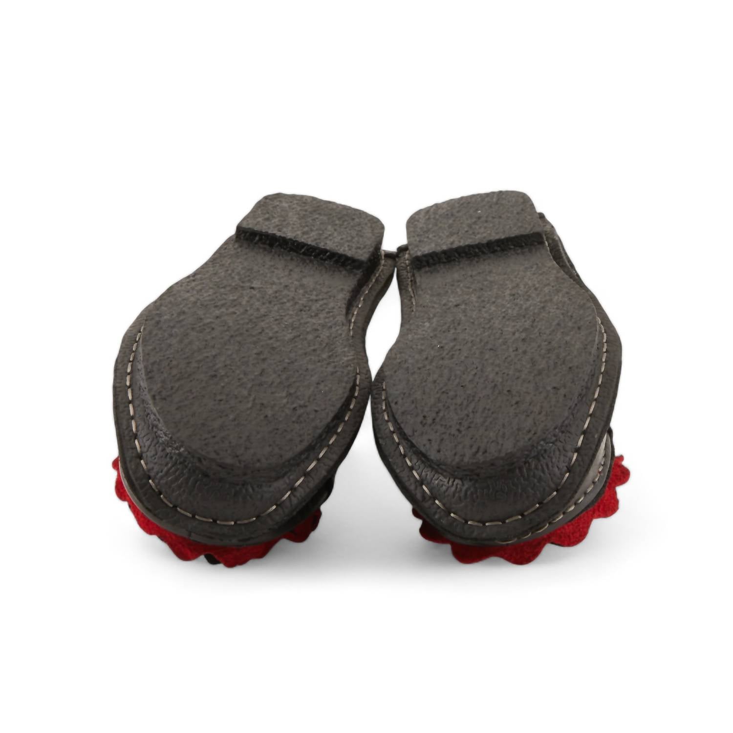 A preppy yet feminine take on the classic loafer. These hand-painted ombré leather ballerinas feature a round toe and a matching leather flower for a touch of elegance. They are lined with leather and include a padded insole made of synthetic leather and soft textile for added comfort. The rubber outsole ensures durabi
