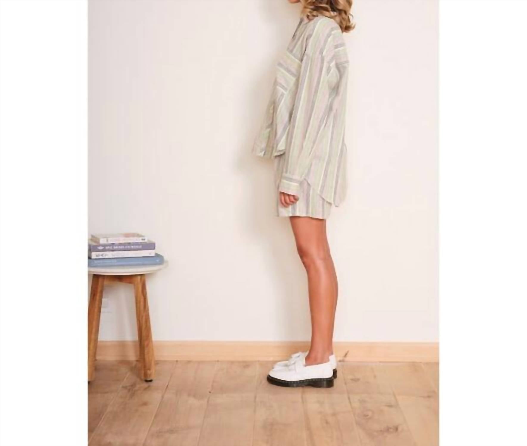 High-waist is here to stay and we especially love this style short. Elevate your spring wardrobe with the Sulmona Stripe Short by dRA Los Angeles, a piece defined by its relaxed silhouette and Soft Rainbow stripe pattern. Designed with practicality in mind, these high-waisted shorts feature side seam pockets and a comf