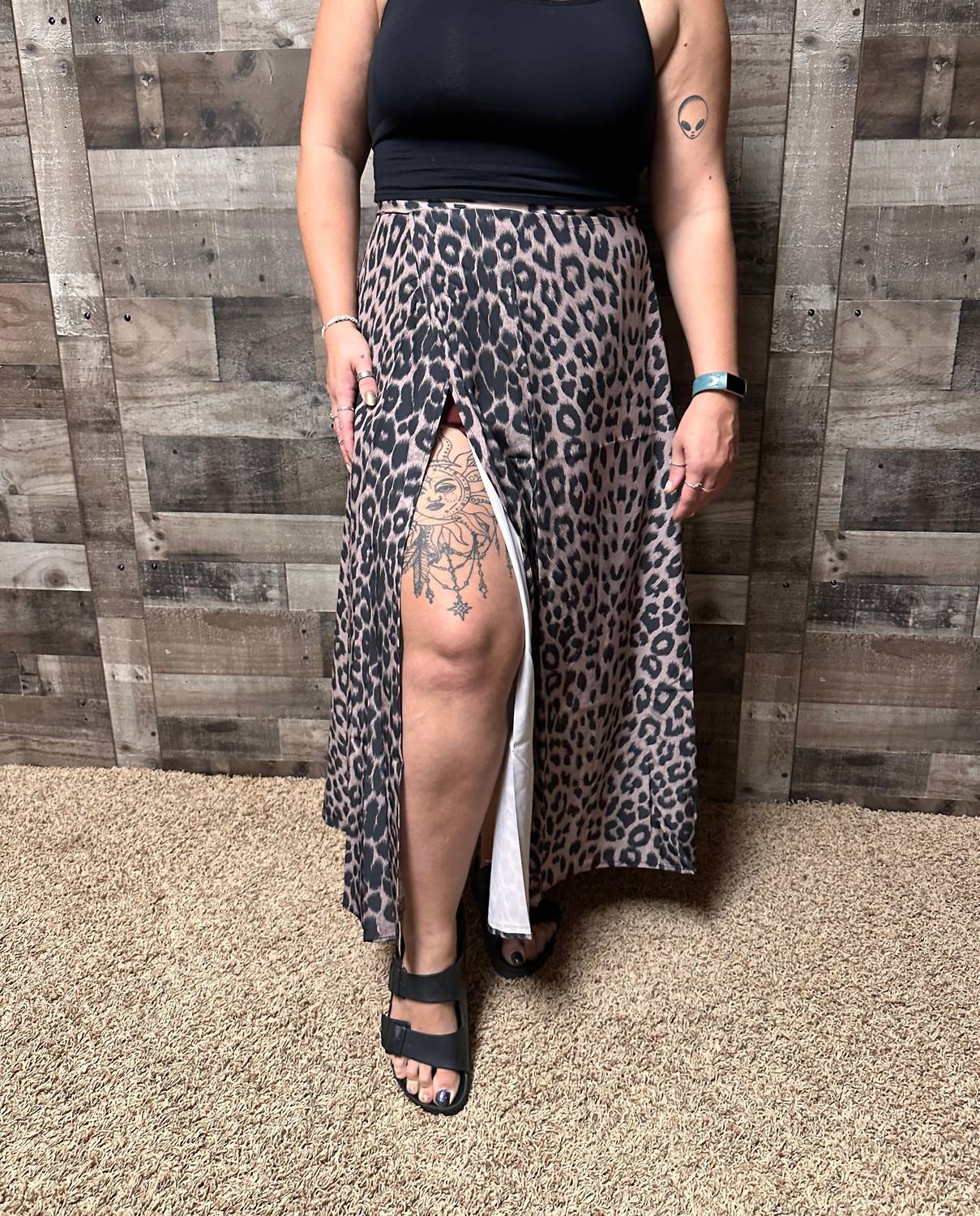 Show off just the right amount of skin in this beautifuly designed midi length skirt. Elevate your wardrobe with the Nikita Leopard Print Wrap Midi Skirt by Ontinva, a statement piece perfect for any dinner party. This shin-length skirt features a tie waist and is crafted from a soft polyester blend in a captivating br