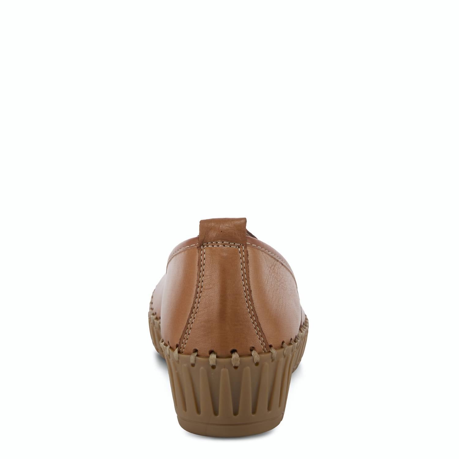 Discover the Tispea Leather Loafer by SPRING STEP SHOES, a stylish slip-on designed for comfort and elegance. Crafted from premium camel leather, this loafer features a round toe and a v-cut vamp with elastic stretch for a secure fit. The sculpted flat rubber wedge outsole ensures stability without compromising on style. Perfect for women seeking a trendy yet comfortable footwear option.