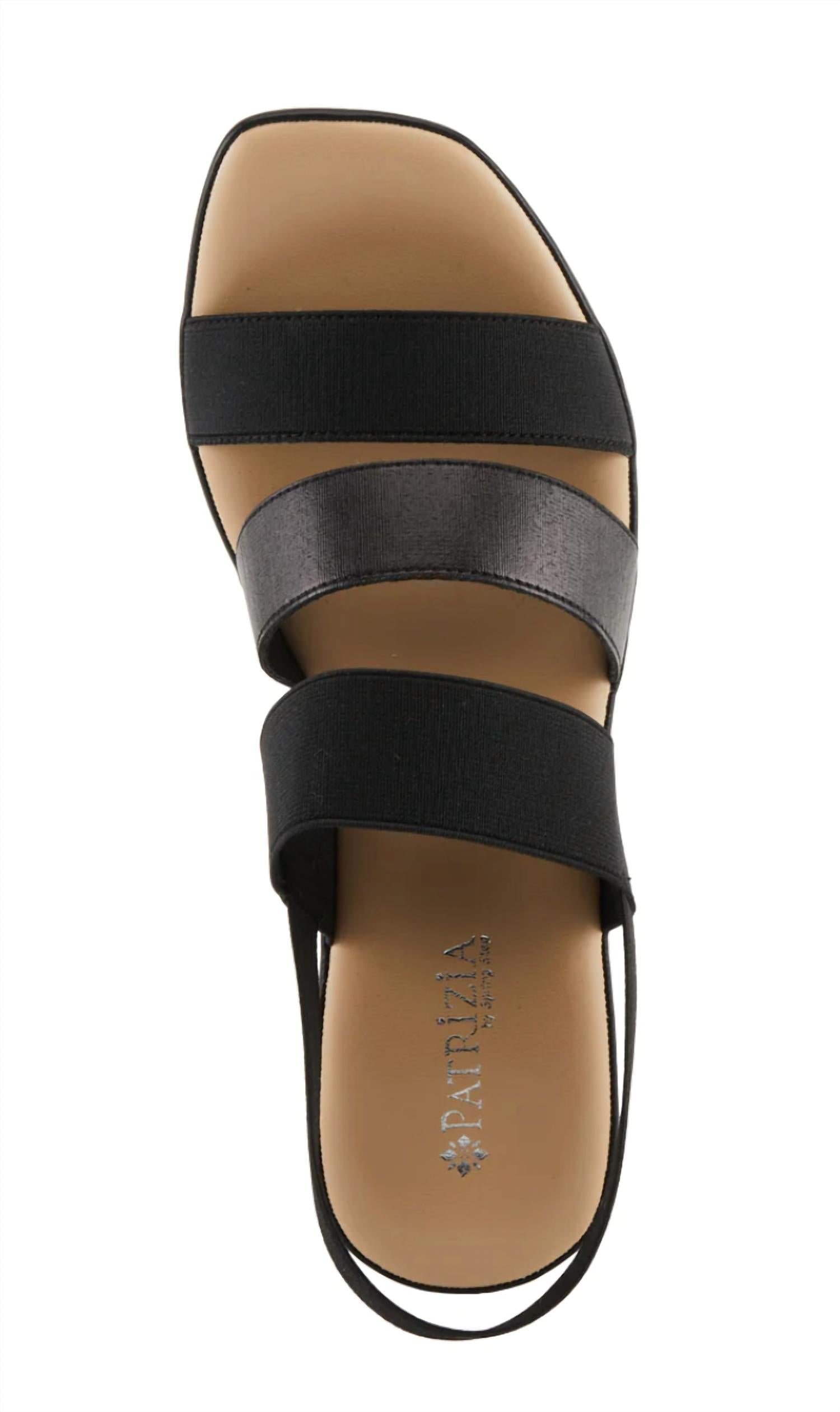 This sandal will take you from brunch to dinner and everything in between. Slip-on. Heel Height: 2.5". Platform Height: 0.75". Multiple stretchy elastic straps with a metallic middle strap for a secure, customized fit. Wrapped platform heel in metallic high-quality material for durability and a sleek appearance. Fits t