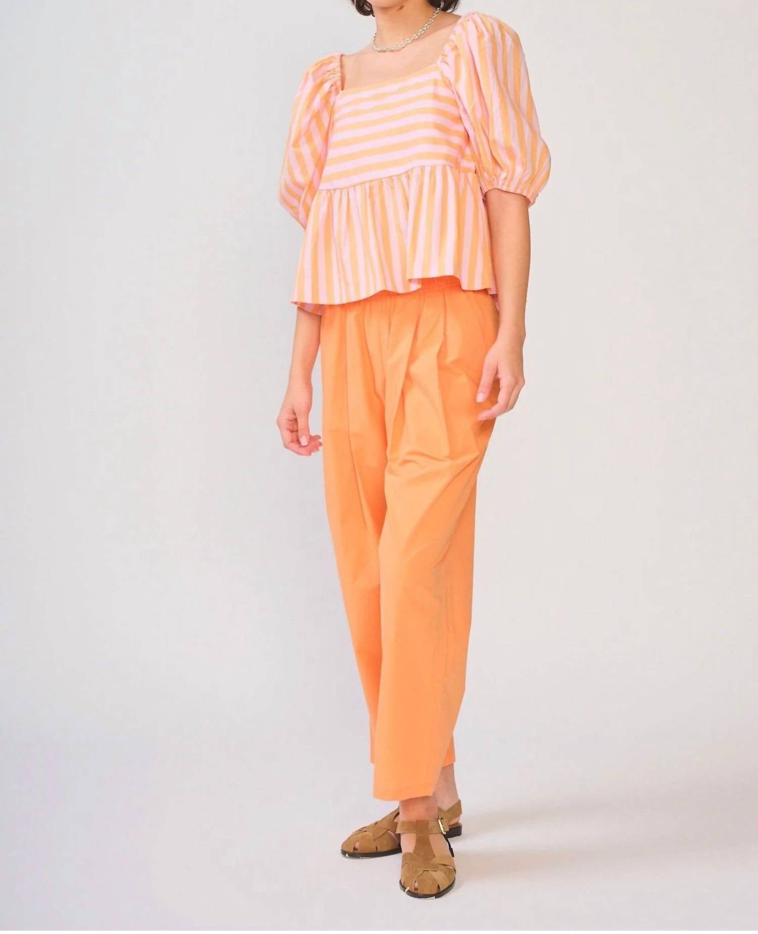 Elevate your style with the Gemma Top by dRA Los Angeles, featuring elbow sleeves and an eye-catching orange and pink stripe pattern. This blouse showcases a flattering high-low silhouette and a square neckline that gracefully frames your décolletage. Designed without pockets, it offers a romantic touch with its adorable puff sleeves. Make this 90s-inspired piece a cheerful addition to your vacation wardrobe.