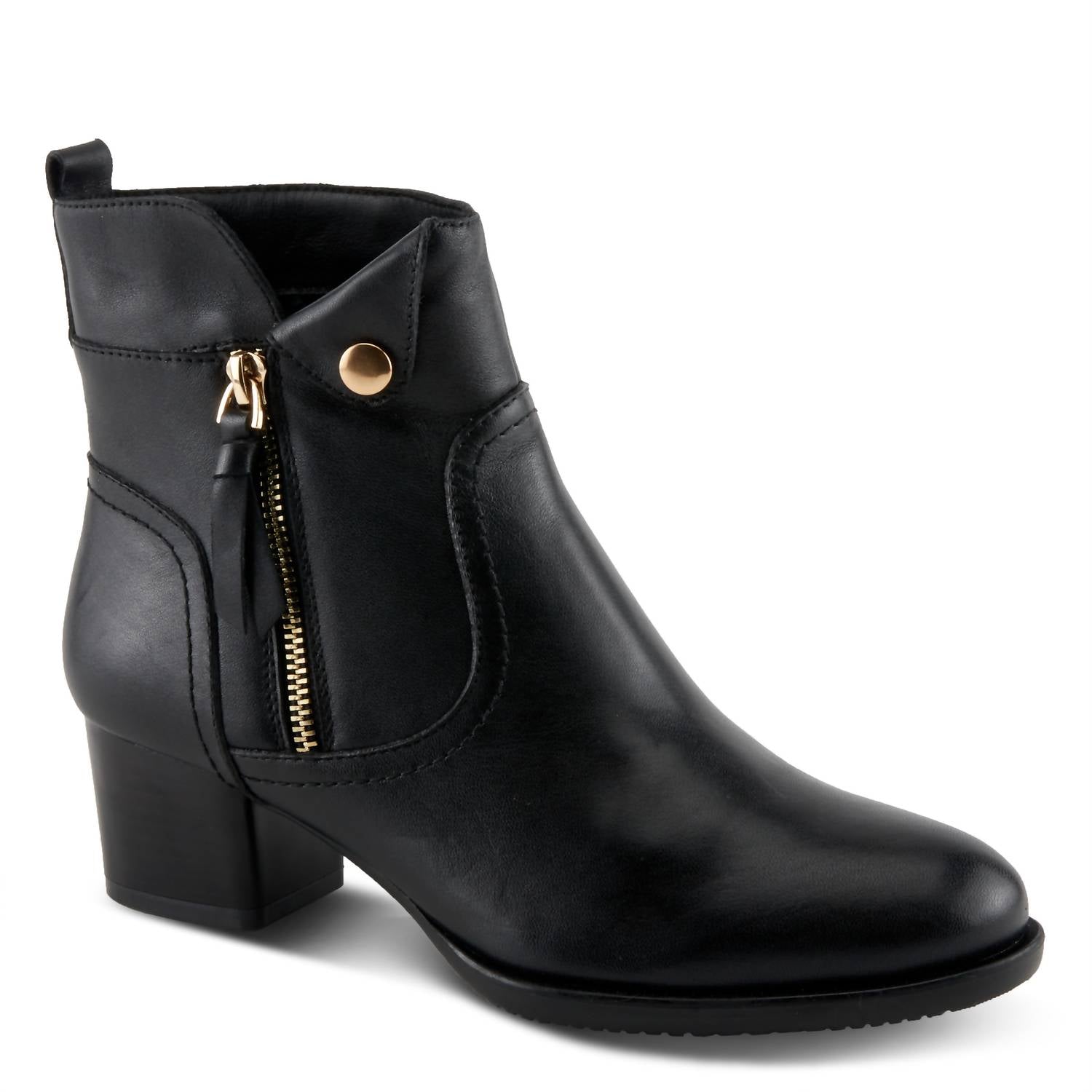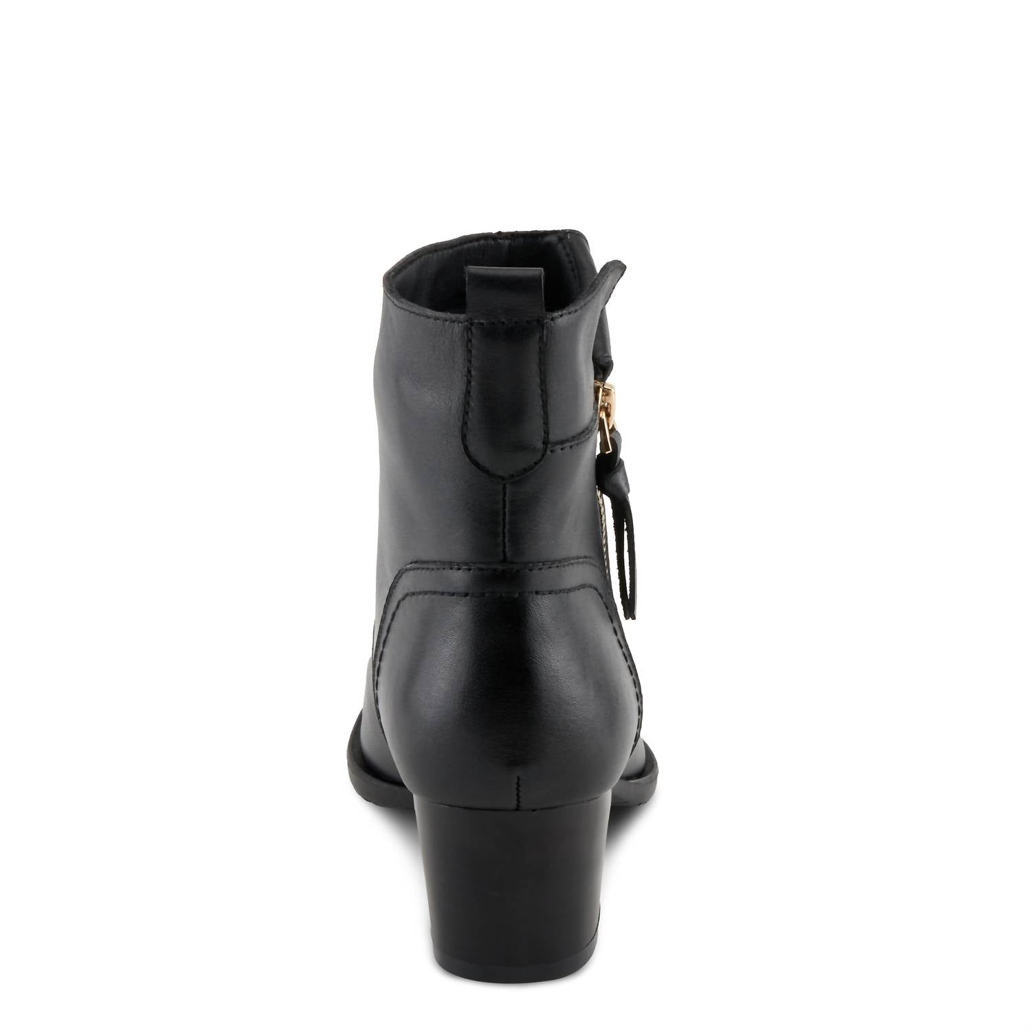 Introducing the Women's Nazca Leather Booties by Spring Step Shoes, a must-have in your boot collection for versatile style and comfort. With a leather upper, these black booties feature an almond toe and a trendy 2-inch block heel, ensuring both elegance and support. Enjoy a flexible design with a convenient outside zipper closure and a synthetic lining, complemented by a padded footbed. Imported and equipped with a synthetic sole, these booties boast an approximate 5.5" shaft height and a 9.5" leg opening.