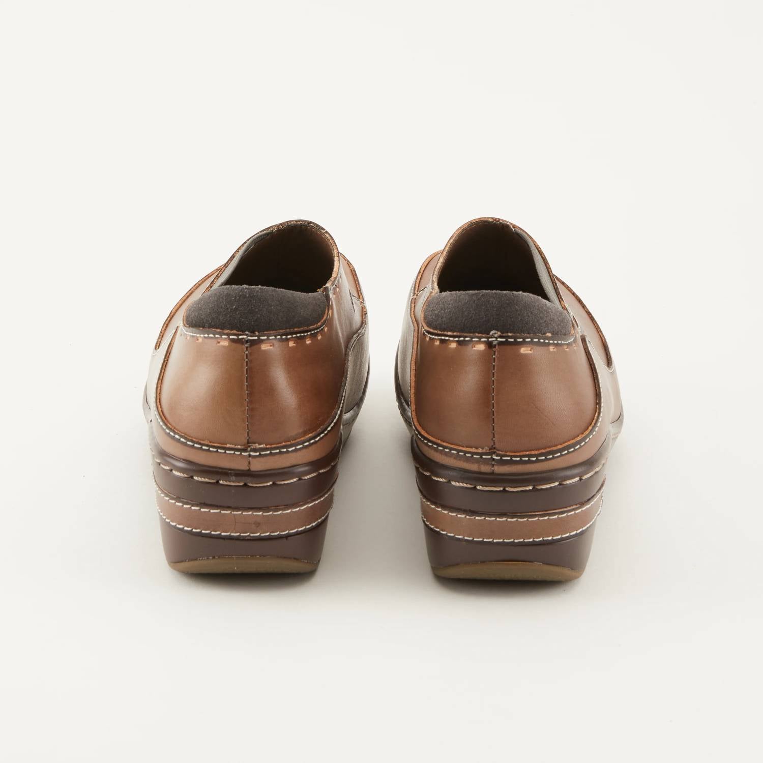 Slip them on and go! Crafted from high-quality synthetic leather, these clogs feature a comfortable round toe and a chic wedge heel standing at 2". Hand painted, closed-back, leather clog with elastic piecing and contrast embossed floral design. Round toe, hand painted leather, elastic side inlay, contrast stitch detai