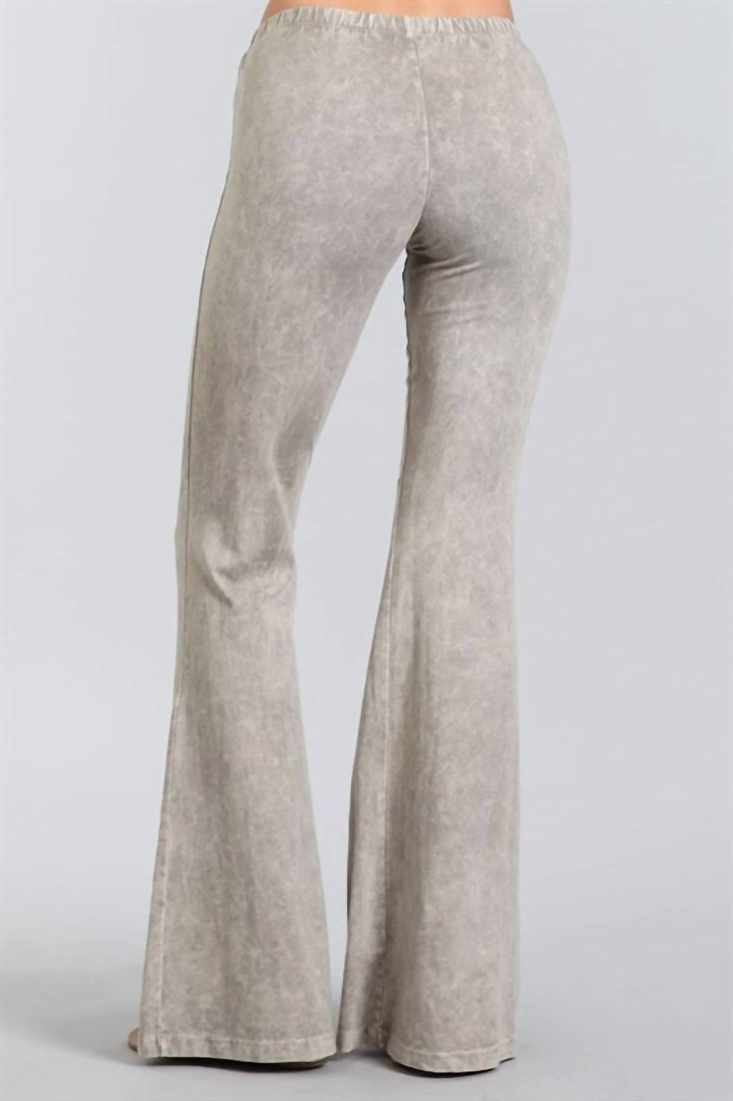 Slightly flared pants are all the rage right now and these are no exception. Pair these with your favorite tee for a more casual look, or with your favorite button-up blouse for an evening out. Discover the ultimate in comfort with the Mineral Wash Bell Bottom Soft Pants by Chatoyant, crafted in a cotton blend for soft