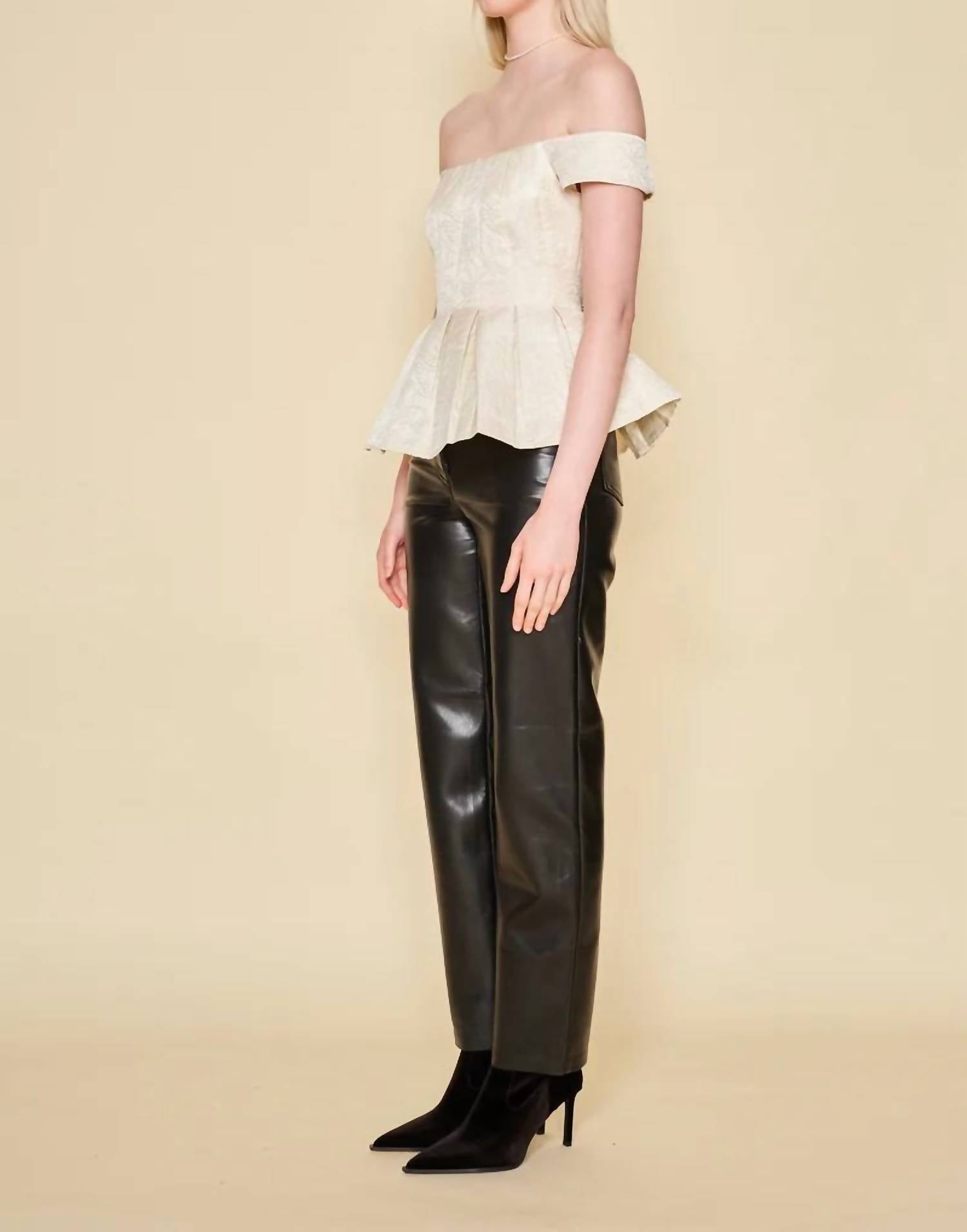 A versatile blouse that works from desk to dinner! Introducing the Leighton Jacquard Off The Shoulder Peplum Top by dRA Los Angeles, a chic addition to any wardrobe in elegant ivory. This sleeveless blouse features a structured design with a gathered sleeve effect, lending a graceful and casual flair suitable for every