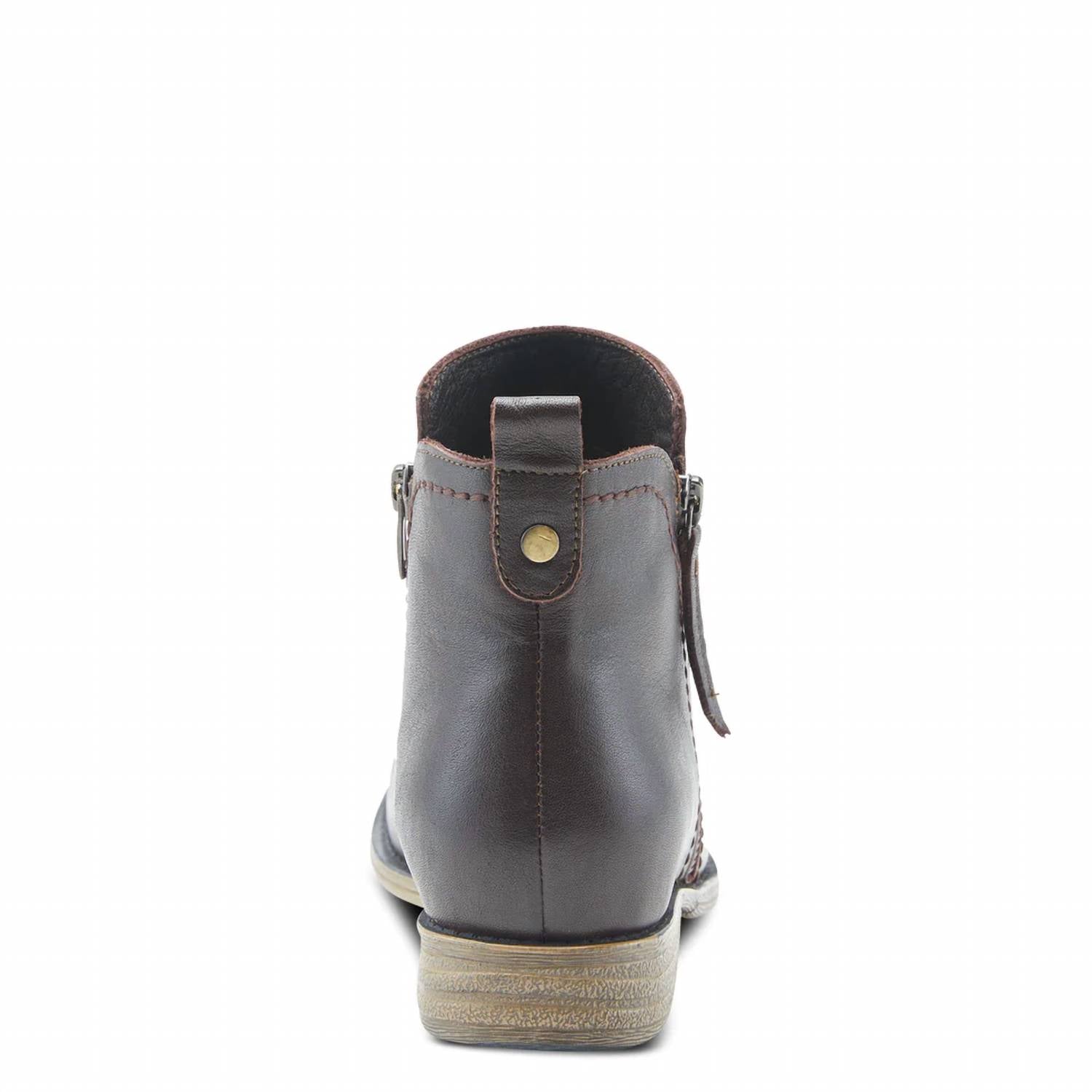Classic leather bootie featuring a decorative outside zipper with a studded leather zipper pull, functional inside zipper, back pull up tab and thick accent stitches all on a flat, chunky heel. Heel Height: 1". Platform Height: 3/8". Upper: Leather. Lining: Textile, Leather. Insole: Leather. Outsole: TPR. Boot Shaft: 7". Boot Circum.: 9"-10"