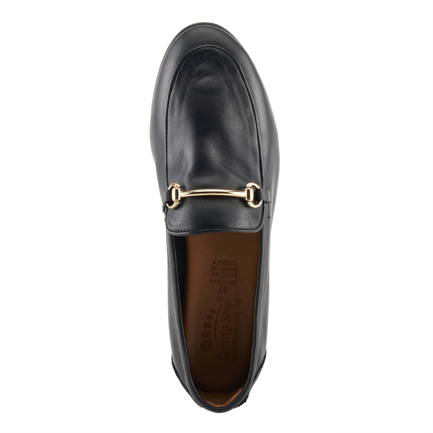 A classic loafer that is both comfortable and polished. Meet the Women's Anianka Loafer by SPRING STEP SHOES, an elegant choice for any occasion. Crafted in Turkey from buttery leather, this loafer features a gold tone polished bit and an almond toe shape. The flexible TPU outsole combines rubber and plastic for durabi