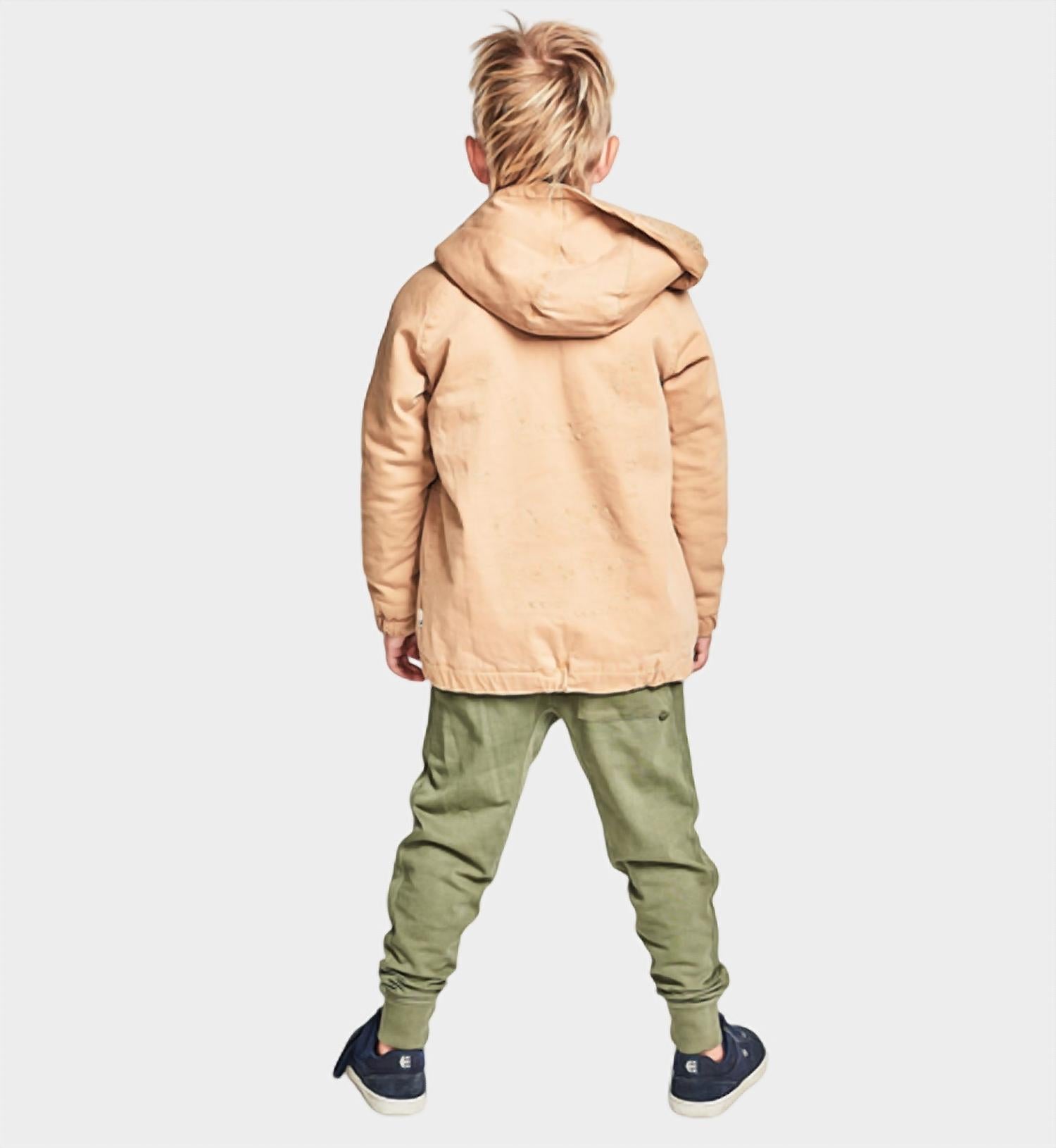 Introducing the Pipepos Pant by MUNSTERKIDS, designed for comfort and style in a washed olivine hue. These cotton joggers boast a tapered leg, with a drop crotch and signature drawstring pull for a relaxed, yet secure fit. Featuring an elastic pull-on waistband, curved front pockets, a button fly, elastic banded hems,