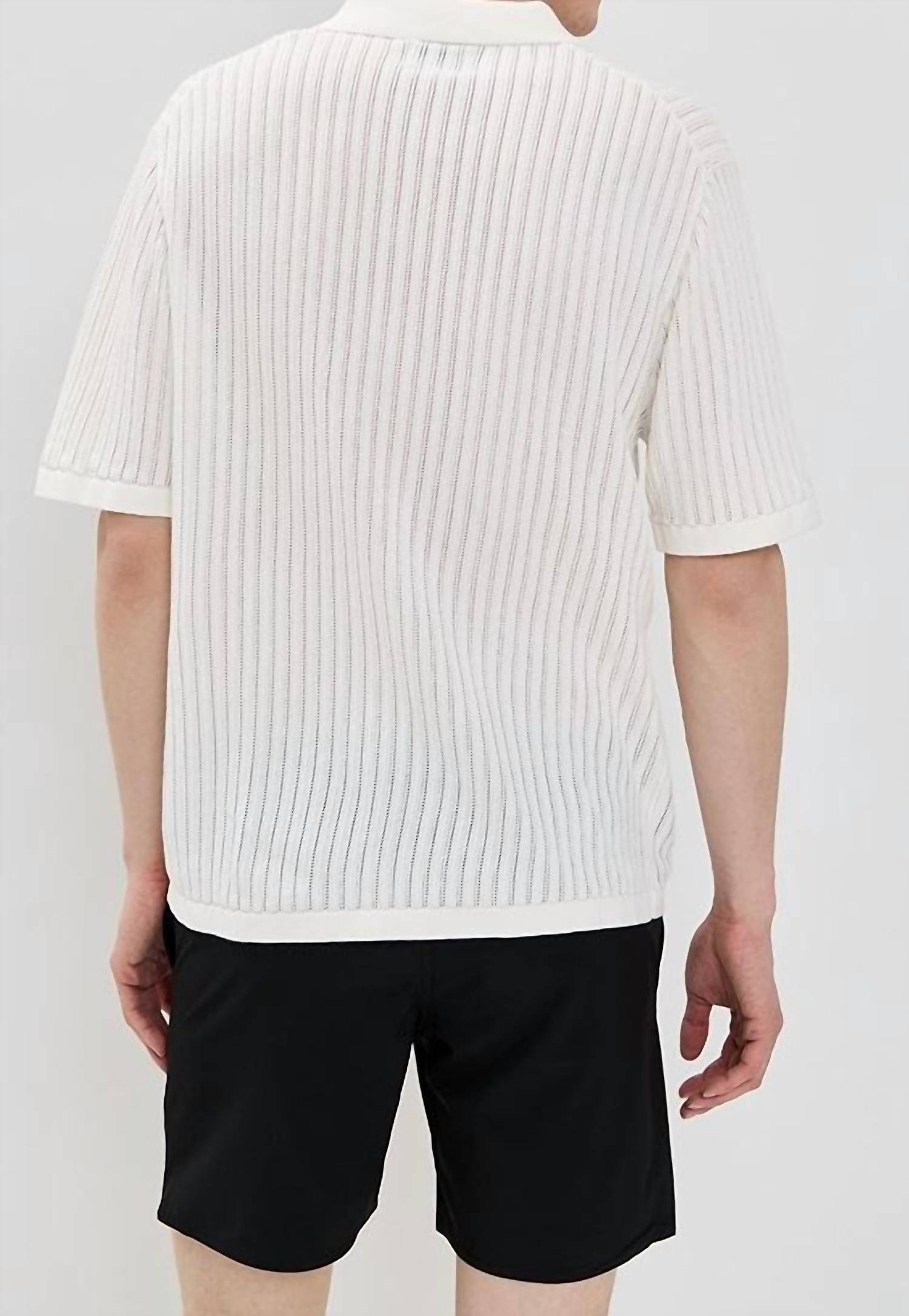 Elevate your summer wardrobe with the Knit Button Down Polo by Rhythm, a standout piece in a natural hue designed for men. This casual button-down shirt features short sleeves and a classic collar, perfect for vacation occasions. Crafted from comfortable cotton, the textured material offers a relaxed, vintage-inspired