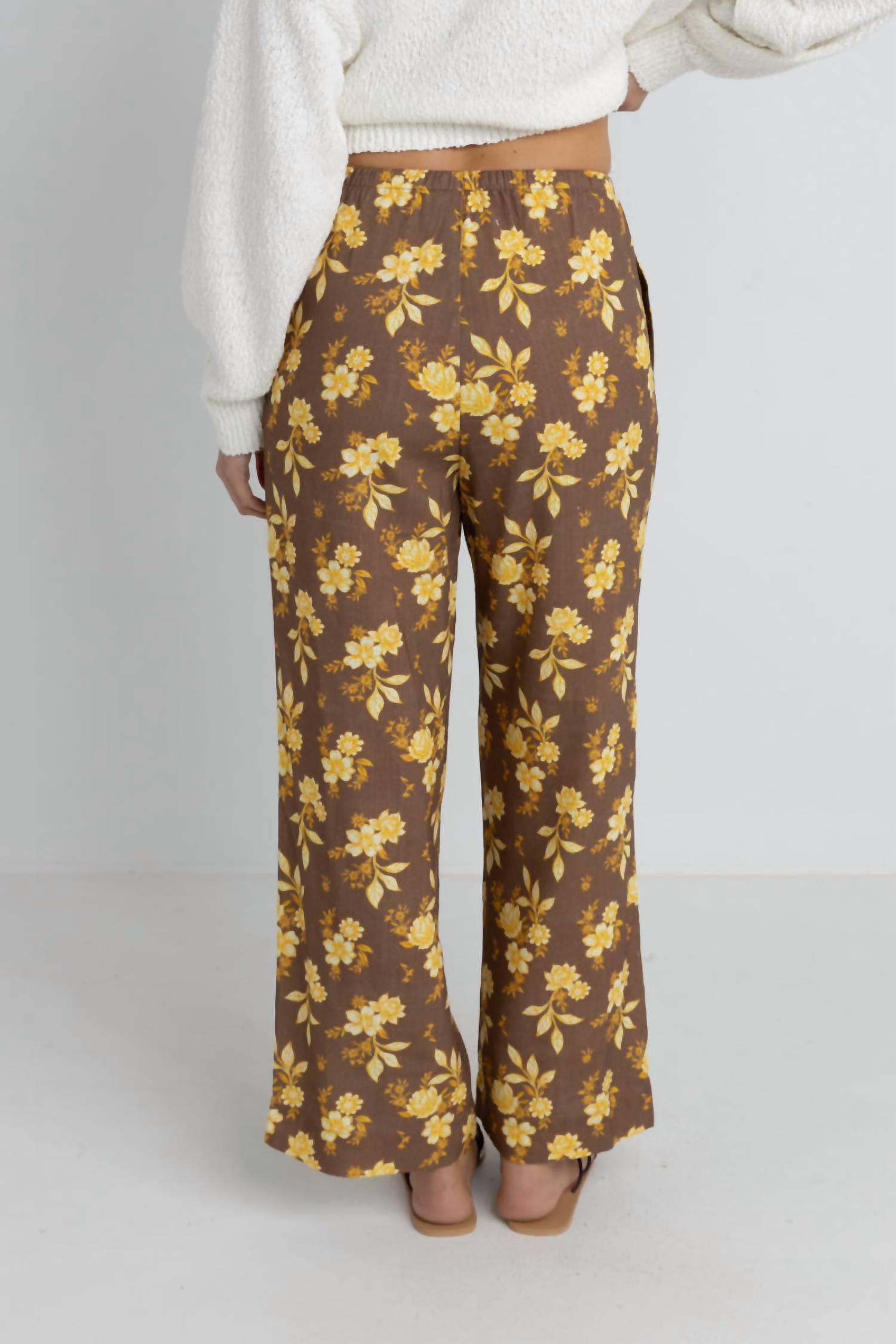 A perfectly tailored straight leg that you'll want in every color! Introducing the Anika Drawstring Pants by Rhythm, designed for effortless coastal style in a chic chocolate hue. These straight-leg pants are made from a 70% rayon and 30% linen blend, featuring a mid-rise fit and a custom floral hand-drawn print. Closu