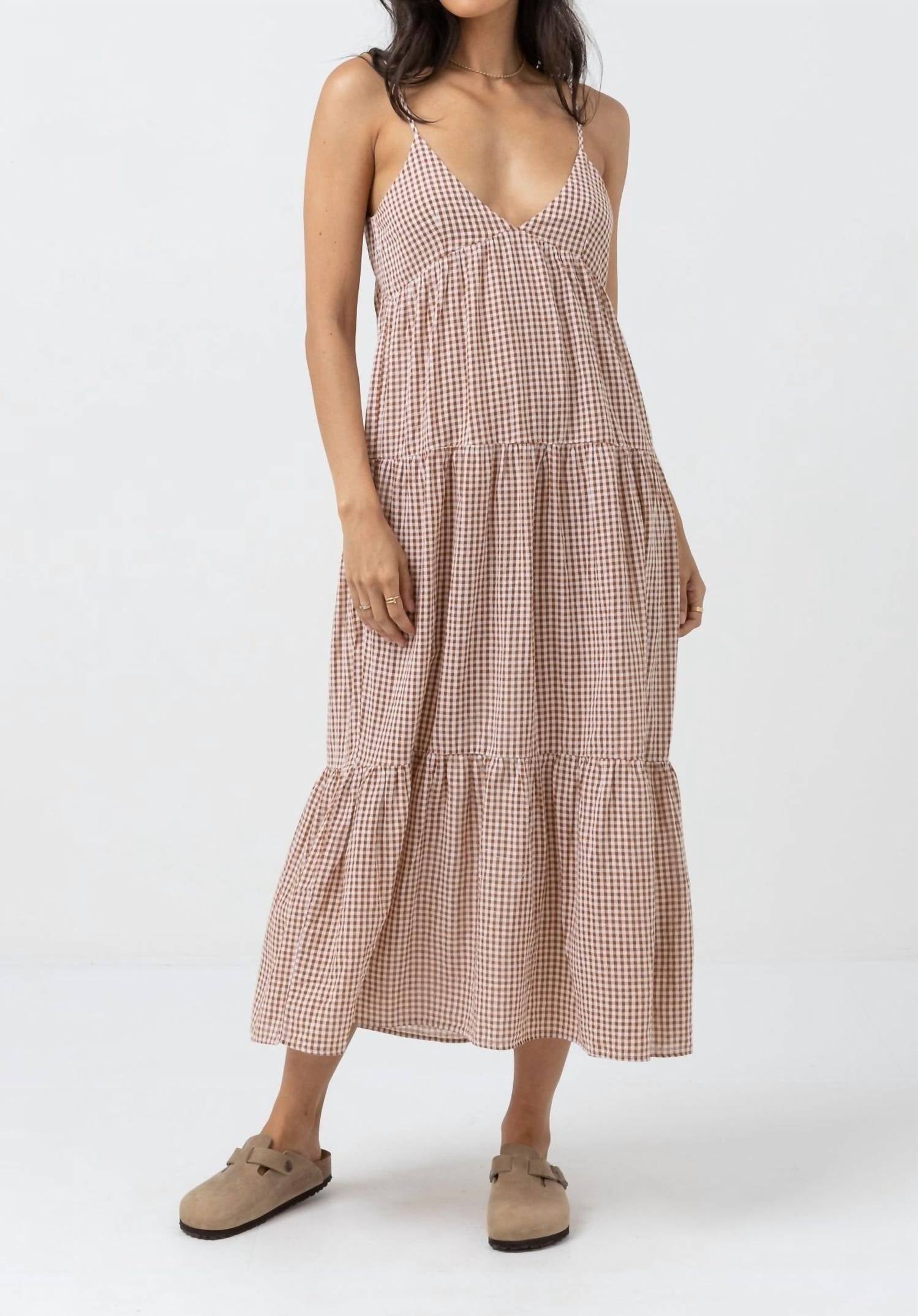 A midi dress so versatile, your options for wearing it are endless. Introduce elegance to your summer wardrobe with the Women's Lola Check Tiered Midi Dress by Rhythm. This midi-length slip dress in a stylish gingham pattern features an effortless tiered design with spaghetti straps and a flattering V-neckline crafted
