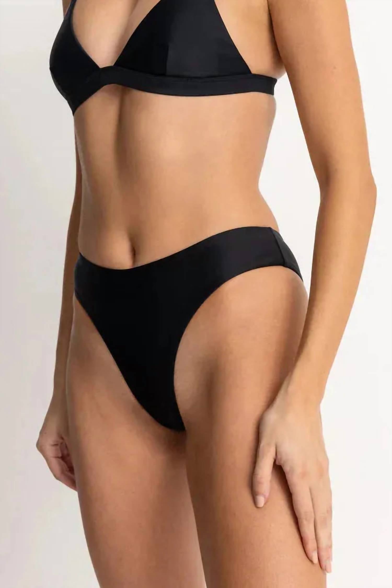 Embrace sustainable fashion with the Women's Classic Holiday Bikini Bottom by Rhythm, crafted in black for the eco-conscious woman. Made from ECONYL nylon, these swim bottoms offer a high-rise fit and cheeky coverage, perfect for a minimalist, modern beach look. This solid bikini bottom is designed with carefully considered leg lines, making it a stylish choice for a sunny Valentine's Day at the beach. Care instructions include hand washing and laying flat to dry.