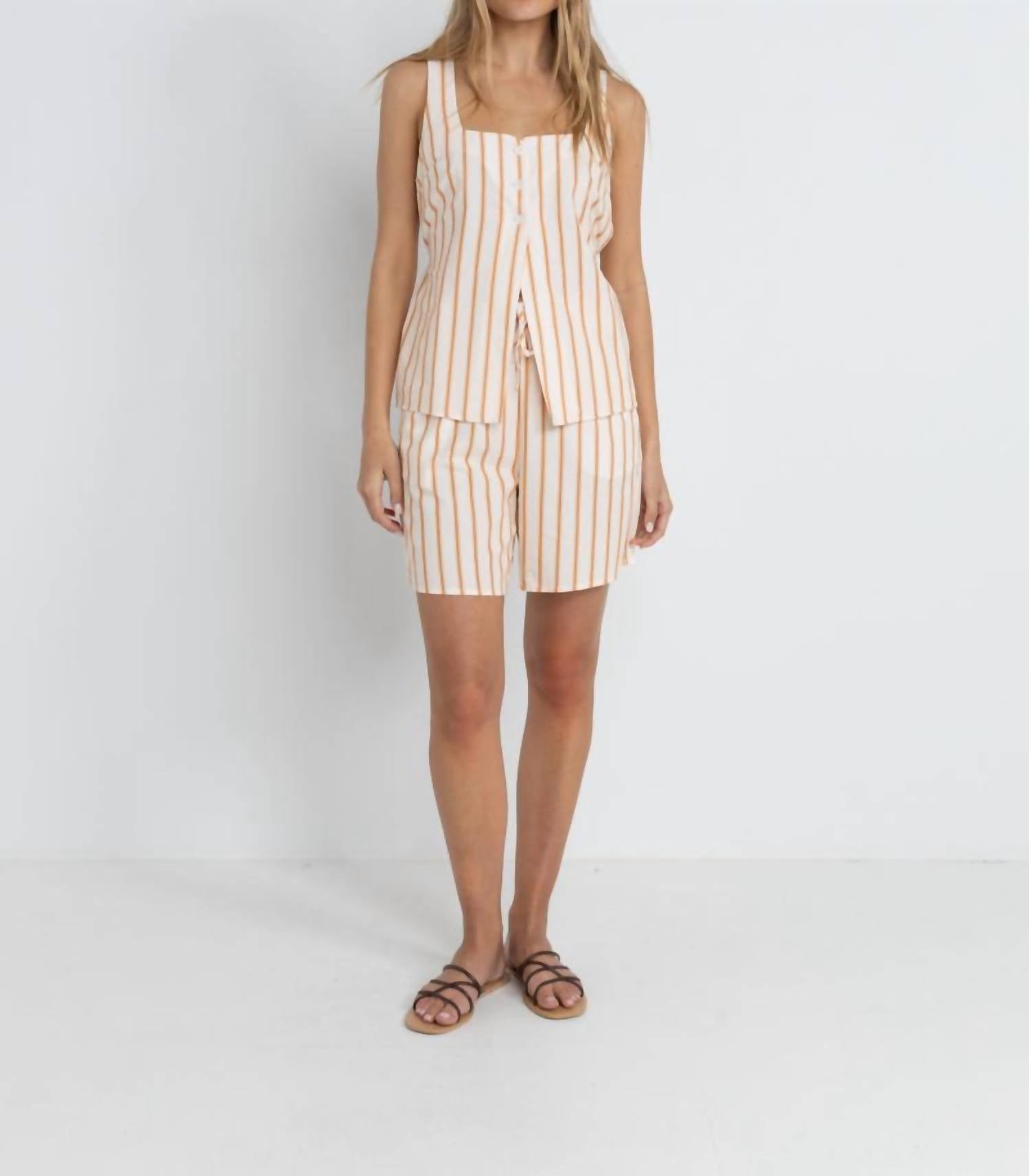 Experience the coastal charm of the Tide Stripe Longline Shorts by Rhythm in a relaxed fit designed for ultimate comfort. These natural-toned shorts are crafted from a breathable 95% cotton and 5% linen blend, featuring a custom stripe pattern perfect for springtime strolls or casual beach outings. The elasticated drawstring waistband and longer leg design enhance ease of wear, while side seam pockets add practicality. Embrace minimalist style with these high-waist pull-on shorts, ideal for holiday parties or Thanksgiving.
